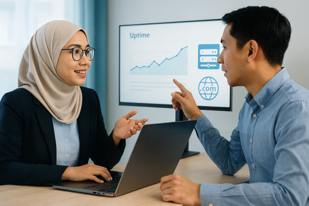 Pilih penyedia hosting yang punya uptime minimal 99,9%, layanan dukungan 24 jam, dan fitur backup otomatis.